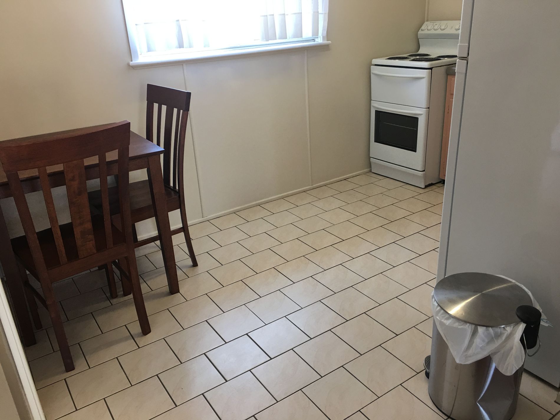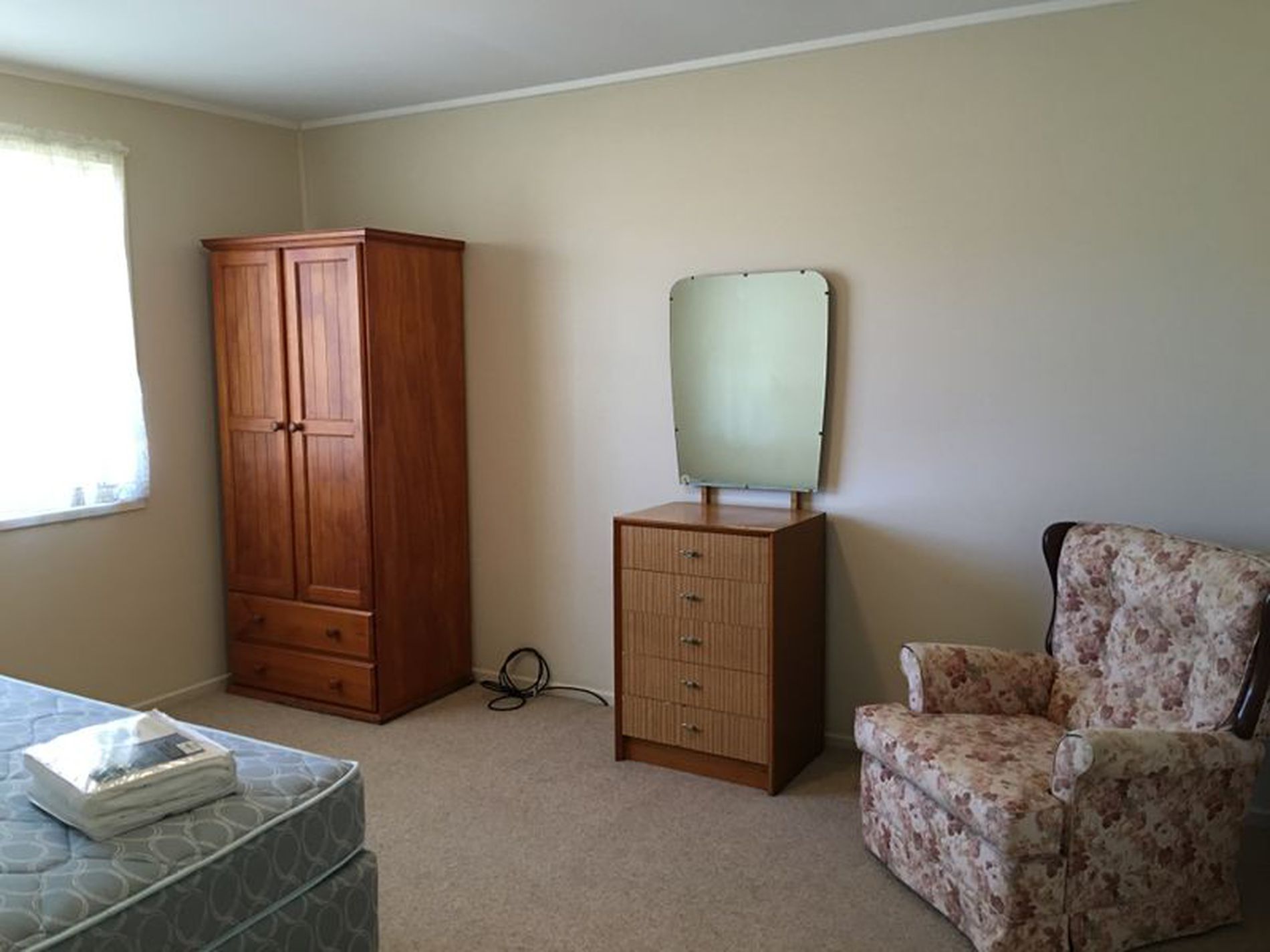 It has one large bedroom and is fully furnished with double bed, lounges, table and chairs, fridge and washing machine.